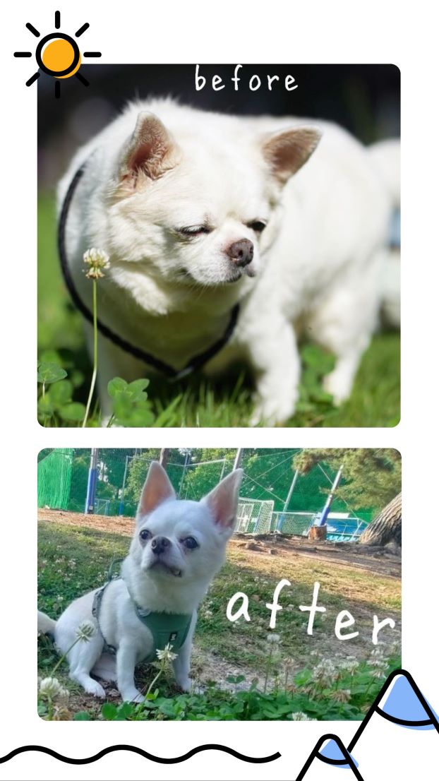 | 8月のお休みをお知らせします。 8月11日(日)、8月18日(日)は終日休診いたします。 8月12日(月)は祝日のため午前診のみの予約制となります。 来院予定の方はお早めにご予約をお願い致します。 ご不明な点がありましたら、スタッフまでお願い致します。 写真はダイエットに成功したチワワのどすこい君です!! なんと!!体重6`→→3.8`に!!